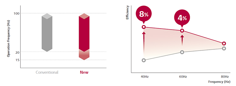 Aparatele de aer conditionat sint echipate cu compresor BLDC care foloseste un magnet foarte puternic din neodymium . Compresorul are eficienta crescuta comparativ cu cele standard inverter si este optimizat pentru eficienta energetica sezoniera (SEER)