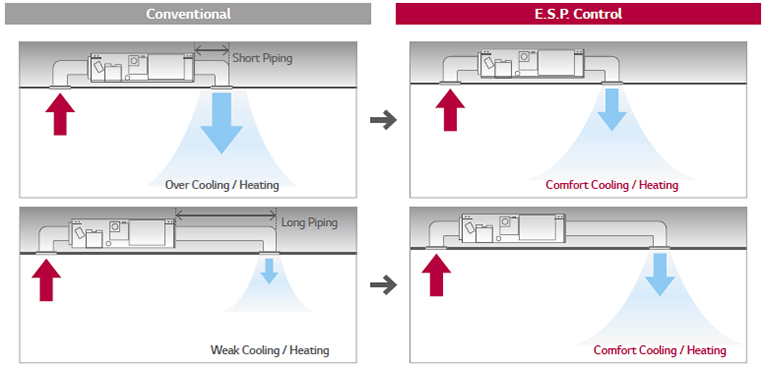 Functia de conrol ESP poate face ca volumul de aer sa fie controlat mai usor din telecomanda . Motorul BLDC poate controla viteza ventilatorului si implicit debitul de aer indiferent de presiunea statica externa . Nu sint necesare alte accesorii aditionale pentru a controla debitul de aer .