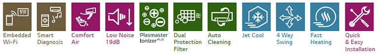 Aparatele de aer conditionat LG lucreaza cu un nivel scazut de zgomot de 19 dB si asigura un flux de aer lin si sanators doar cu atingere de buton.