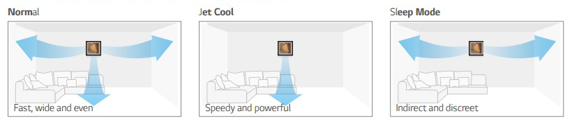 Aparatele de aer conditionat ofera un flux de aer puternic (Jet Mode),ce poate raci camera mai repede in timp ce poate livra aer racit in toate directiile.