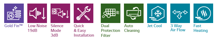 Aparatele de aer conditionat LG lucreaza cu un nivel scazut de zgomot de 19 dB si asigura un flux de aer lin si sanators doar cu atingere de buton.