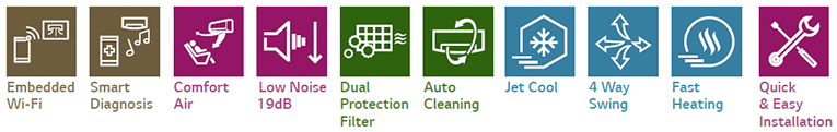 Aparatele de aer conditionat LG lucreaza cu un nivel scazut de zgomot de 19 dB si asigura un flux de aer lin si sanators doar cu atingere de buton.