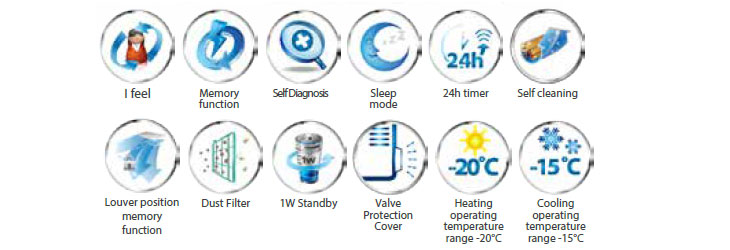 Design-ul special al schimbătorului de căldură oferă performanță ridicata. Compresorul cu eficiență de vârf in consumul energiei este un element esențial al tehnologiei. Designul prizei de aer asigura o ieșire optimă ce asistă eficienta energetica.