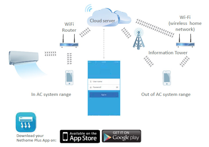 Generația a doua de VIVAX DC invertor mono split Sisteme AC, Y DESIGN au posibilitatea de a-și extinde funcțiile prin modulul WiFi care poate fi cumpărat și instalat în unitatea interioară. Prin modulul WiFi instalat sistemul AC comunică cu dispozitivul dvs. inteligent și vă puteți controla sistemul AC din orice loc din lumea, chiar dacă nu sunteți aproape de sistemul în sine. Pentru a controla sistemul VIVAX AC printr-un dispozitiv Smart este necesar să cumpărați și să instalați modulului WiFi sub panoul din unitatea interioară și sa descărcati gratuit Aplicația pe dispozitivul dvs. inteligent. În urma câtorva pași simpli în instrucțiuni pe care le-ați primit în ambalajul modulului WiFi Sistemul dvs. VIVAX AC devine controlat în fiecare moment, oriunde te afli. Ceasul săptămânal este primul lucru nou și vă oferă posibilitatea de a vă adapta sistemul dvs. în fiecare zi în avans. A doua noutate este că acum puteți verifica starea dvs. Sistemul AC în 97 de puncte separate. Dacă aveți vreo îndoială despre performanța sistemului de AC Diagnosticul dvs. este doar un singur clic pe dispozitivul dvs. inteligent. De asemenea, poate fi foarte util pentru serviciul de asistență pentru persoanele care pot diagnostica acum și elimina orice eșec mai ușor și mai rapid. A treia noutate pe noua aplicație este posibilitatea de a vedea energia electrică consumata lunar. Nu în ultimul rând aveti posibilitatea de a vă adapta AC în modul de dormit, dacă este necesar. Ați uitat să opriți aparatul de aer condiționat? Sistemul VIVAX AC vă permite să îl dezactivați practic oriunde v-ați afla. Dac sunteti în casa dvs., conectați la router-ul WiFi, Dispozitivul dvs. inteligent funcționează la fel ca o telecomanda, cu adăugarea că nu trebuie să vă aflați în aceeași cameră ca sistemul AC pentru ao controla. De exemplu aveti posibilitatea pentru a controla sistemul AC din orice cameră din casă, chiar de la parter, fără probleme de a intra în aceeași cameră ca și unitatea interioară. Dacă vă aflați în afara domeniului wireless de acasă este posibilă controlul asupra sistemului dvs. VIVAX AC prin rețeaua 3G / 4G.