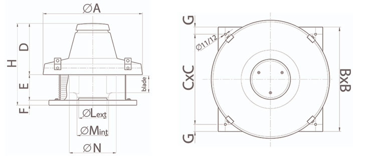 Ventilator centrifugal adecvat pentru extragerea fumului fierbinte la o temperatură de până la 400 ° C timp de 120 de minute.